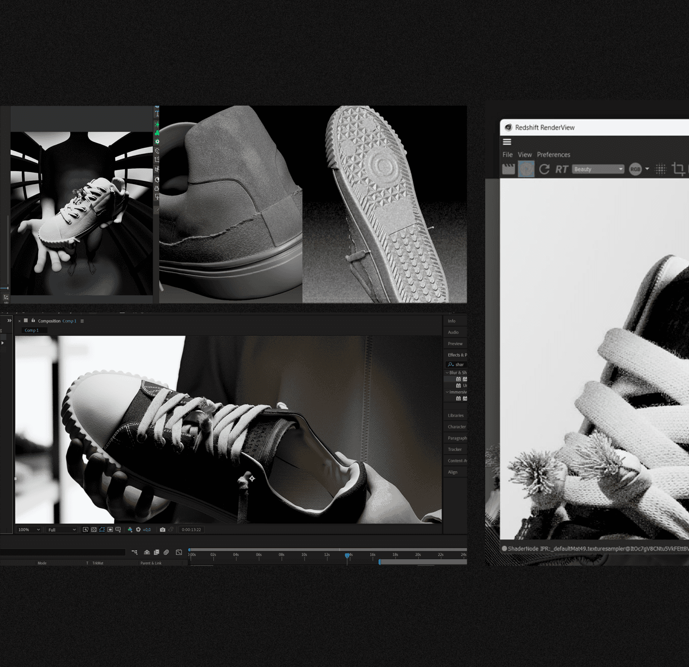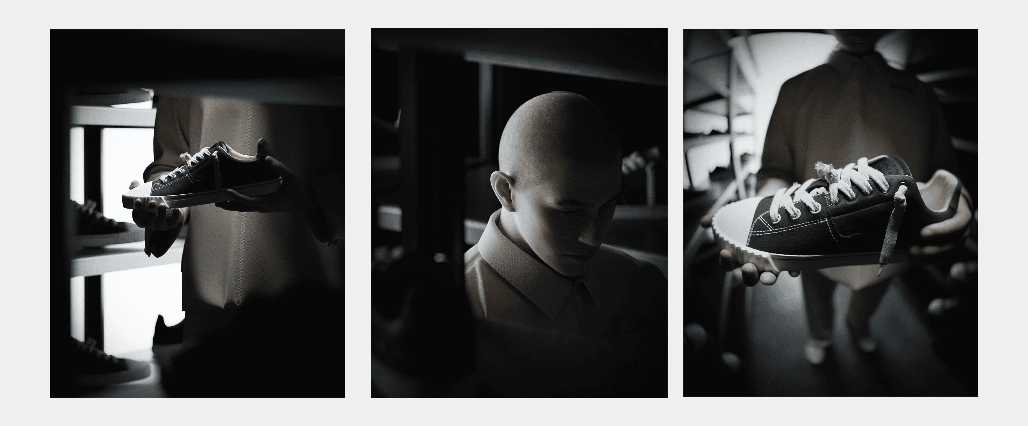 A Swiss agency we have long been in contact with approached us for an extensive campaign. The core of the project was a CG teaser film for their client, an Italian startup producing high-quality footwear. Our role was to design and model a "Digital Craftsman" and a sneaker for the brand's web platform. A key element was their corporate identity, centered around green marble, which had to be integrated into a short animation for the website’s main banner. Beyond the teaser, we prepared all necessary assets for the Digital Craftsman to enable interactive AI engagement with the character on the brand’s site.